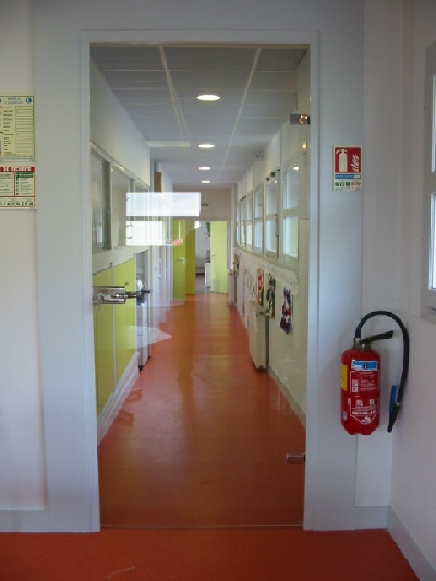 o Maçonnerie du préau enduite de couleur claire + insertion de pavés de verre de couleurs variées (espace ludique)